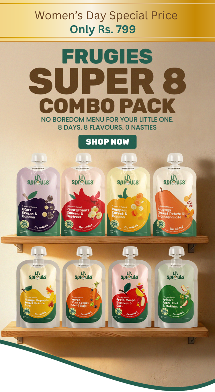 We’ve reimagined infant food to be as convenient as it is nutritious. Inspired by India’s vibrant farm bounty, our blends offer that homemade taste loved by even the pickiest eaters. With Zero Sugar, Zero Preservatives, and Zero Additives, these are pure, clean-label fruit and veggie purees designed for your baby’s healthy snacking.