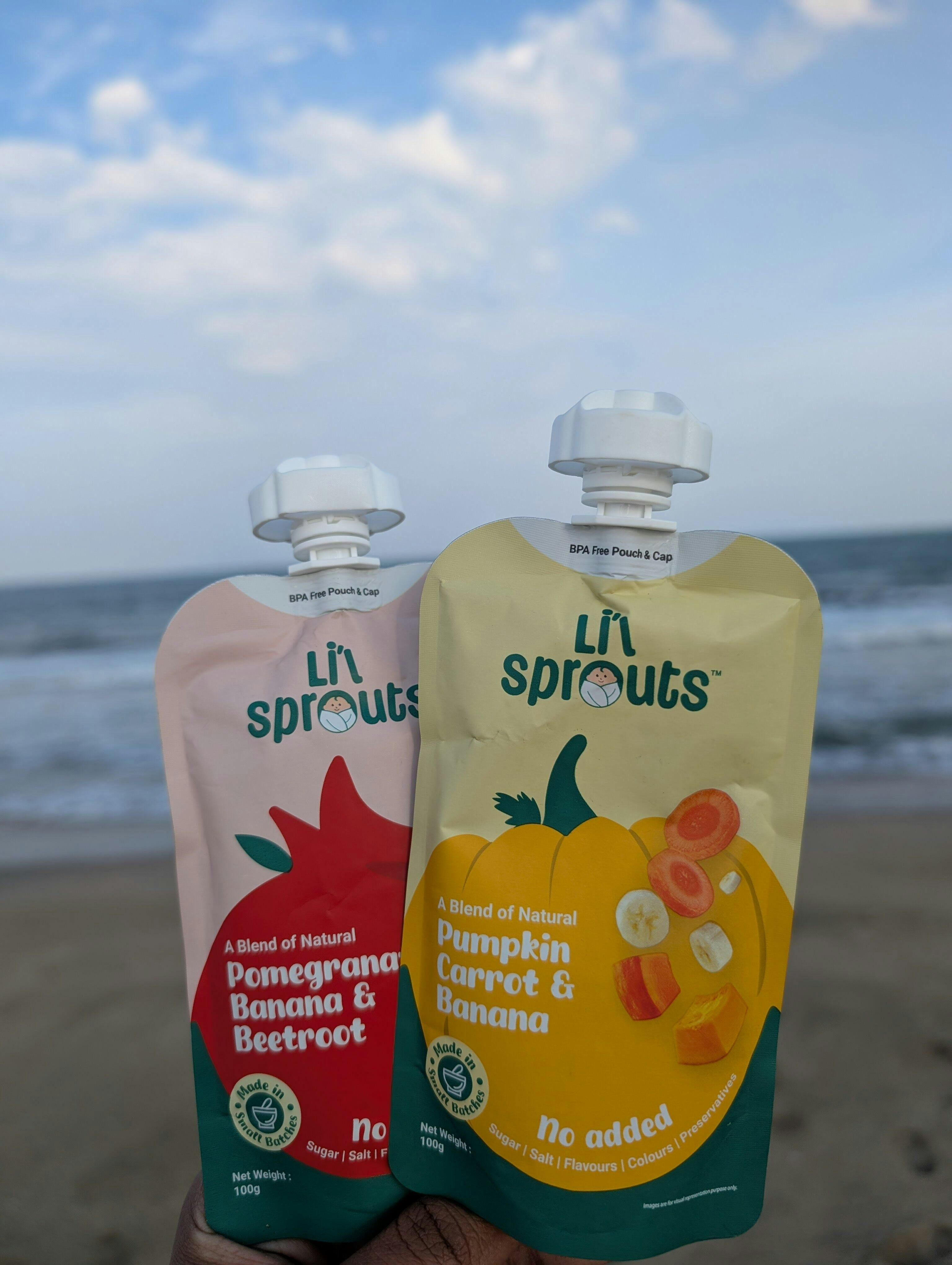 I was so worried about ensuring hygienic food for my baby during the trip and was looking at multiple options, but most of them had preservatives, or 1-2 other chemicals. Then I came across Li'l Sprouts and orders their purees. Believe me, they made my travel snacking worry vanish. My baby had one pouch everyday for all the 8 days whenever we were on-the-go and this saved me from so much crankiness and made the trio memorable. Thank you Li'l Sprouts!